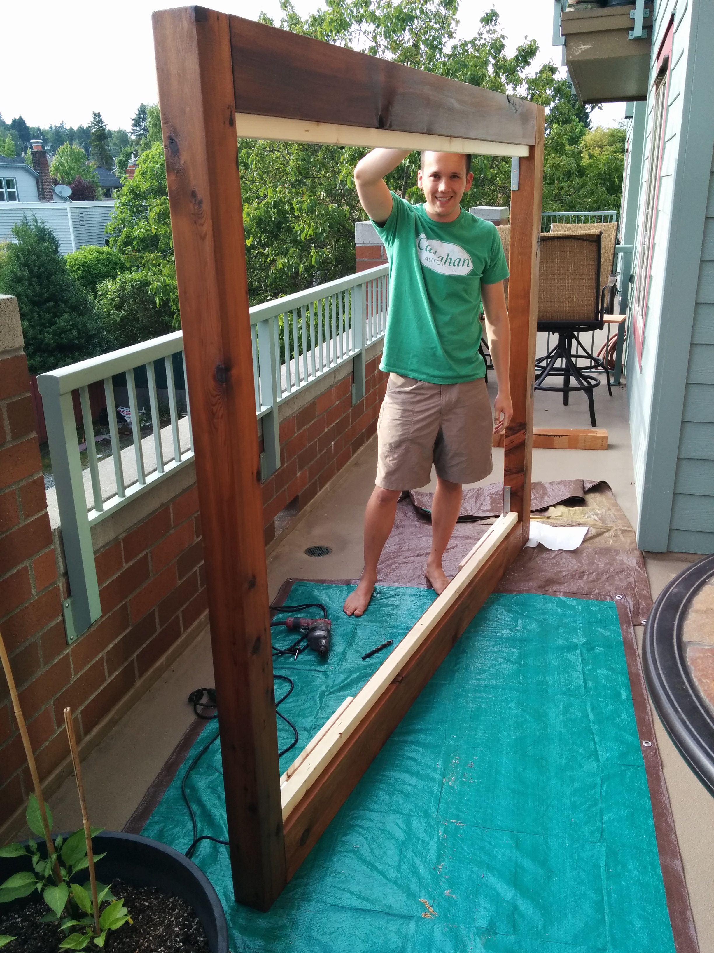 Attaching the second side was the trickiest becasue we had to flip the bed over and hold it steady as we attached the corner braces and 1x4s.